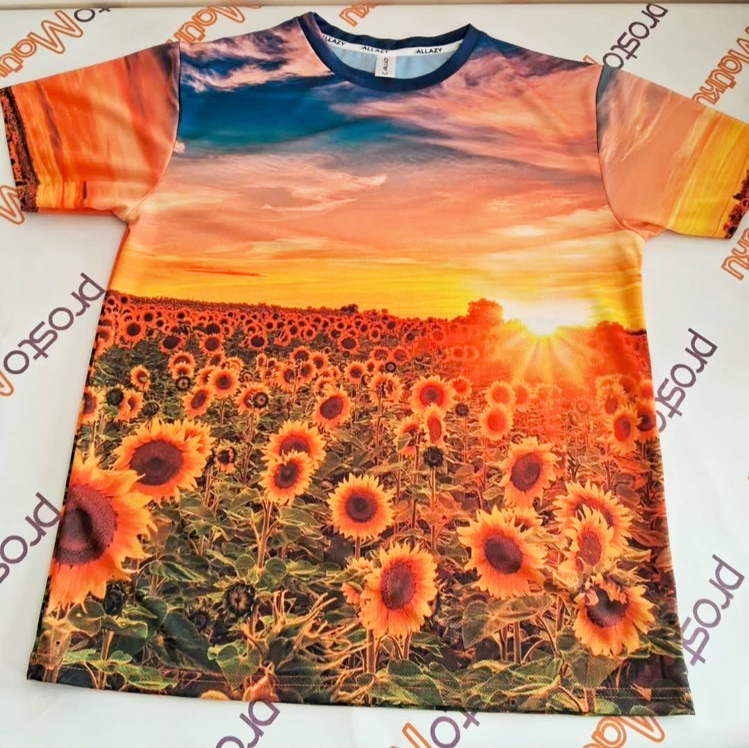Мужская футболка с полной запечаткой Поле подсолнухов (3D футболка).
