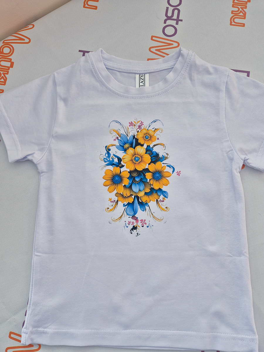 Детская футболка Желто-синий цветочный арт (2)