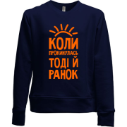 Детский свитшот без начеса с надписью Когда проснусь, тогда и утро