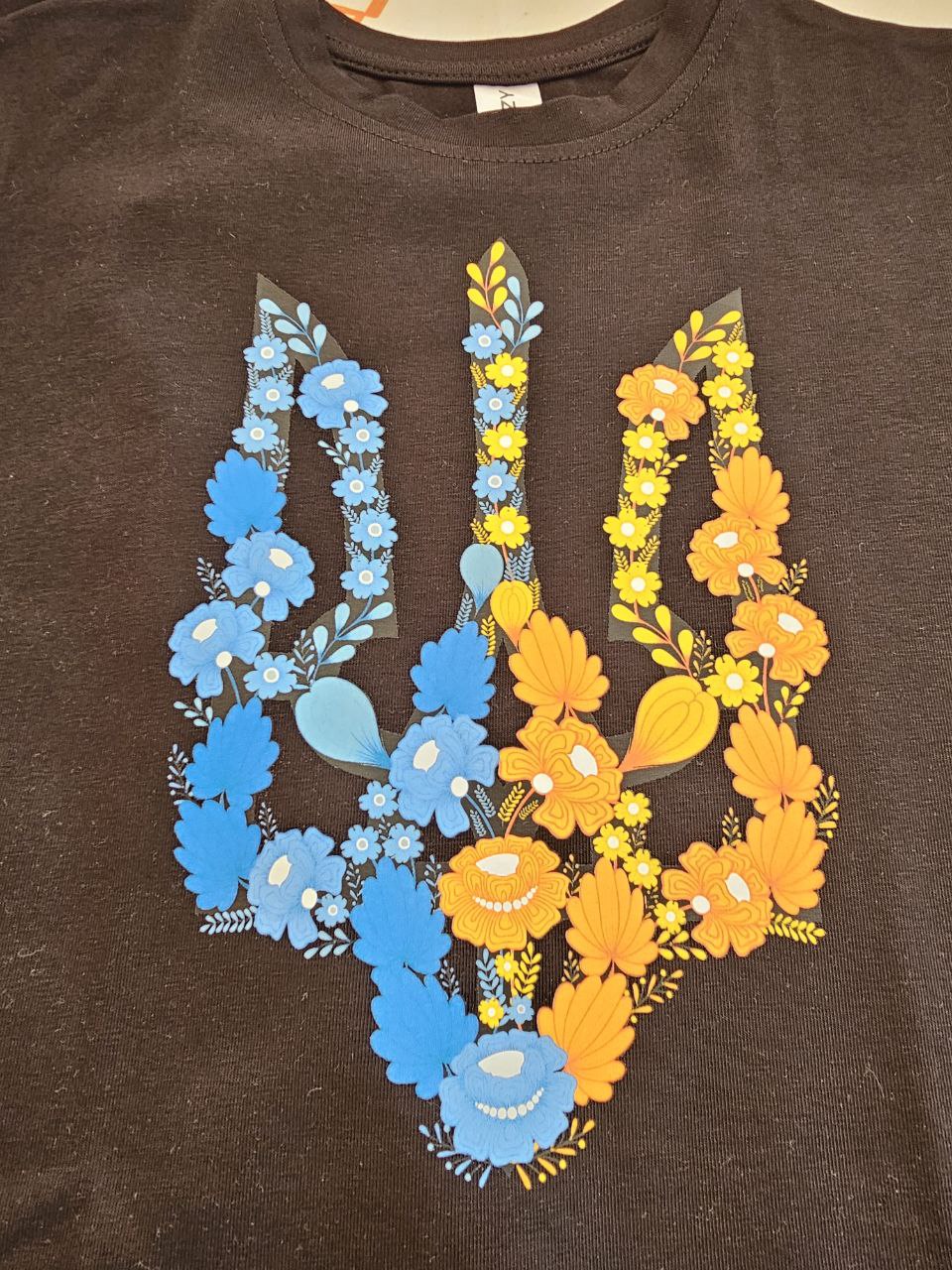 Футболка женская PANI с гербом Украины из желто-синих цветов