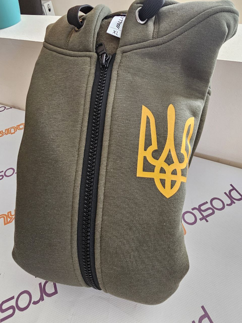 Мужская толстовка на молнии с маленьким гербом Украины на груди