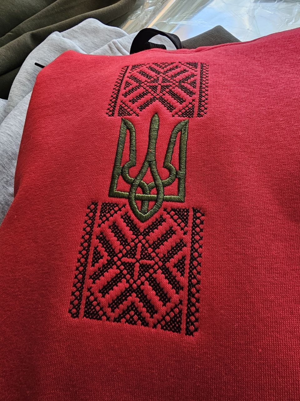 Худи с черной вышиванкой и оливковым тризубом (Вышивка)